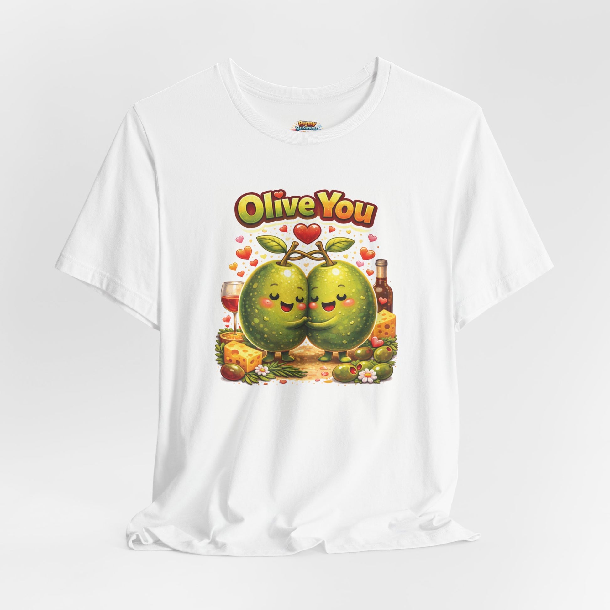 "Olive You" Pun T-Shirt for Women | Funny Food Wordplay Graphic Tee Gift for Girlfriend | Cute Valentine's Day Shirt